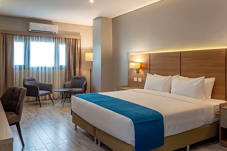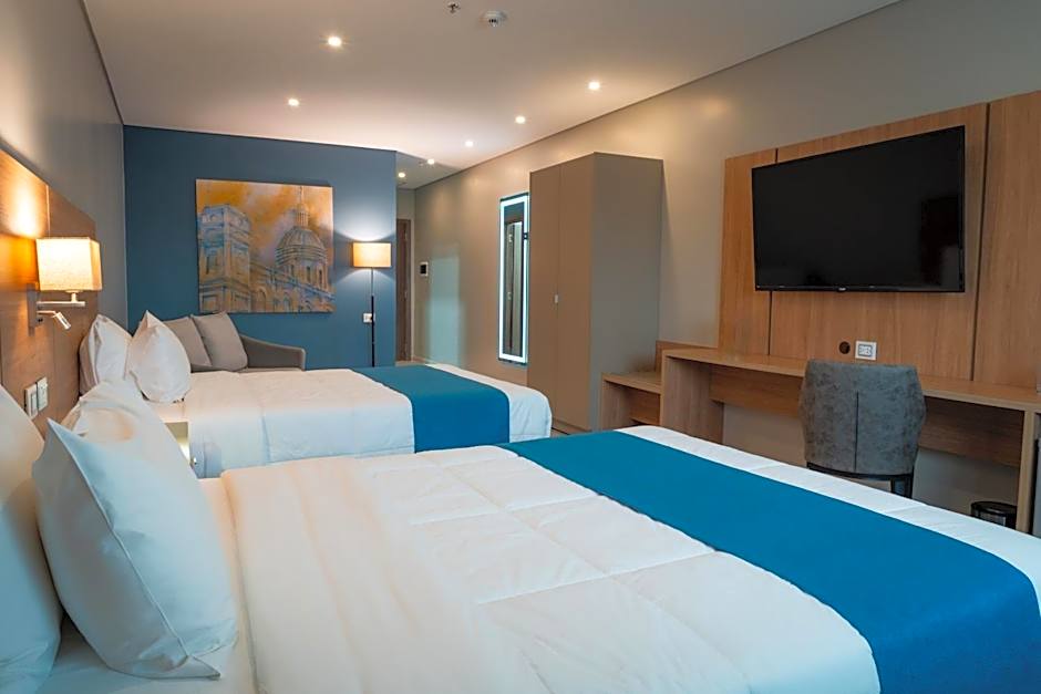 The quadruple room features air conditioning, a mini-bar, as well as a private bathroom boasting a shower and a bidet. The quadruple room offers a tea and coffee maker, a wardrobe, a safe deposit box, a flat-screen TV, as well as city views. The unit has 2 beds.